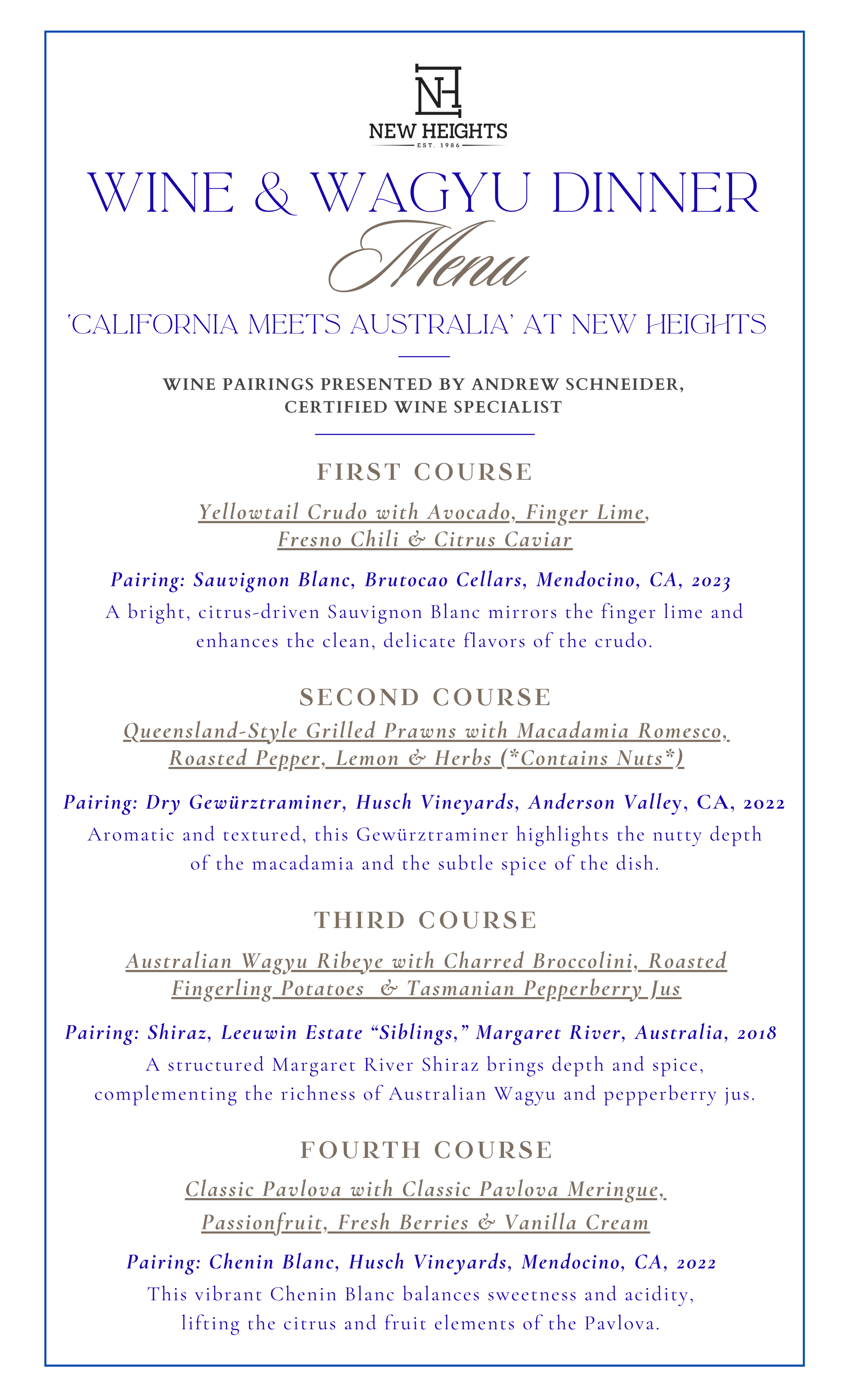 Each pairing will be personally guided by a Certified Wine Specialist, offering thoughtful insight into the artistry behind every glass.